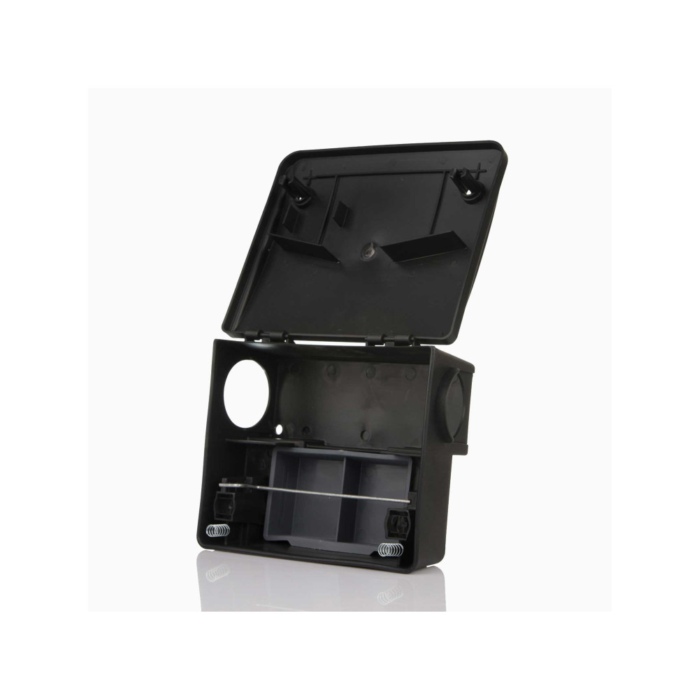 Εύχρηστος δολωματικός σταθμός με σκληρό πλαστικό (πολυπροπυλένιο) για αρουραίους (και ποντίκια). Aνθεκτικός στις ακραίες θερμοκρασίες. Περιέχει ειδικό σύρμα για τοποθέτηση δολωμάτων σε “block” ή “pasta” και πιατάκι για χύμα δολώματα, καθώς και εξαρτήματα και ειδικά σημεία για εναλλακτικούς τρόπους τοποθέτησης χωρίς δυσκολίες. Με δυο κλειδαριές ασφαλείας και ειδικό κλειδί για μεγαλύτερη προστασία από εξωτερικούς παράγοντες (ζώα, παιδιά). Διαστάσεις 23cm χ 19cm x 9,5cm.